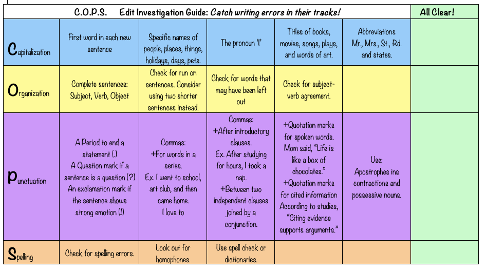 Good writers check writing for errors because they want their ideas to be understood. You can check your own writing for errors by using the COPS strategy.