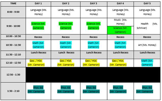 Here is a copy of your schedule: